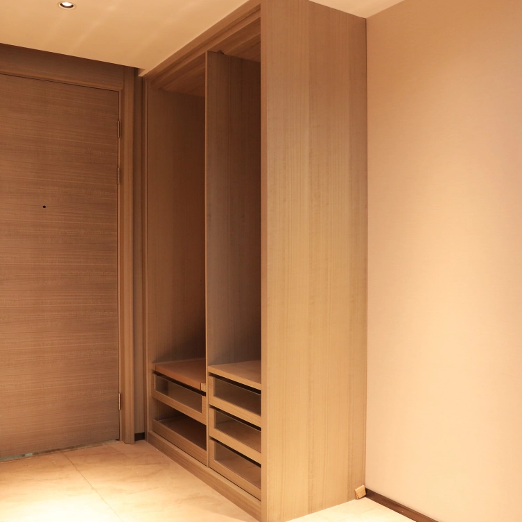 Diseñado para la industria de la hospitalidad, nuestro vestuario personalizado hotelero redefine las soluciones de almacenamiento, ofreciendo un equilibrio perfecto de atractivo y utilidad estética. Hecho a mano con una atención meticulosa al detalle, este guardarropa presenta un diseño elegante y minimalista con texturas de granos de madera cálidos, integrándose sin problemas en varios temas de la habitación de hotel, desde configuraciones minimalistas modernas hasta espacios elegantes contemporáneos.