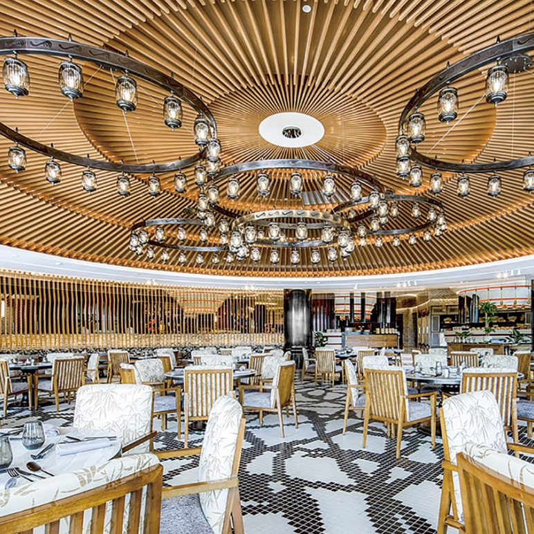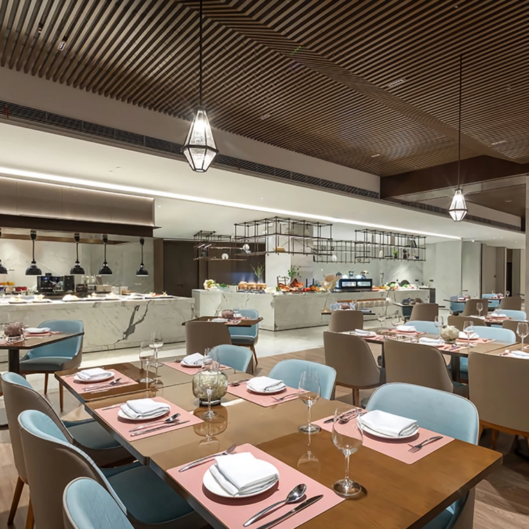 La personalización es fundamental para nuestro servicio. Adapte las dimensiones, los colores y los materiales para que coincidan con la marca de su hotel. Seleccione entre los tonos de tela, los acabados de la mesa y los estilos de silla, ya sea mesas de mármol minimalistas para un bistro elegante o juegos de madera ornamentados para cenar. Adapte los diseños para la eficiencia del espacio, desde arreglos de bistró compactos hasta grandes tablas comunales.